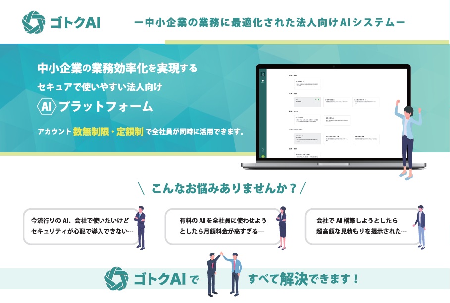 「ゴトクAI」セットアップ費用(別途):10万円(税抜)